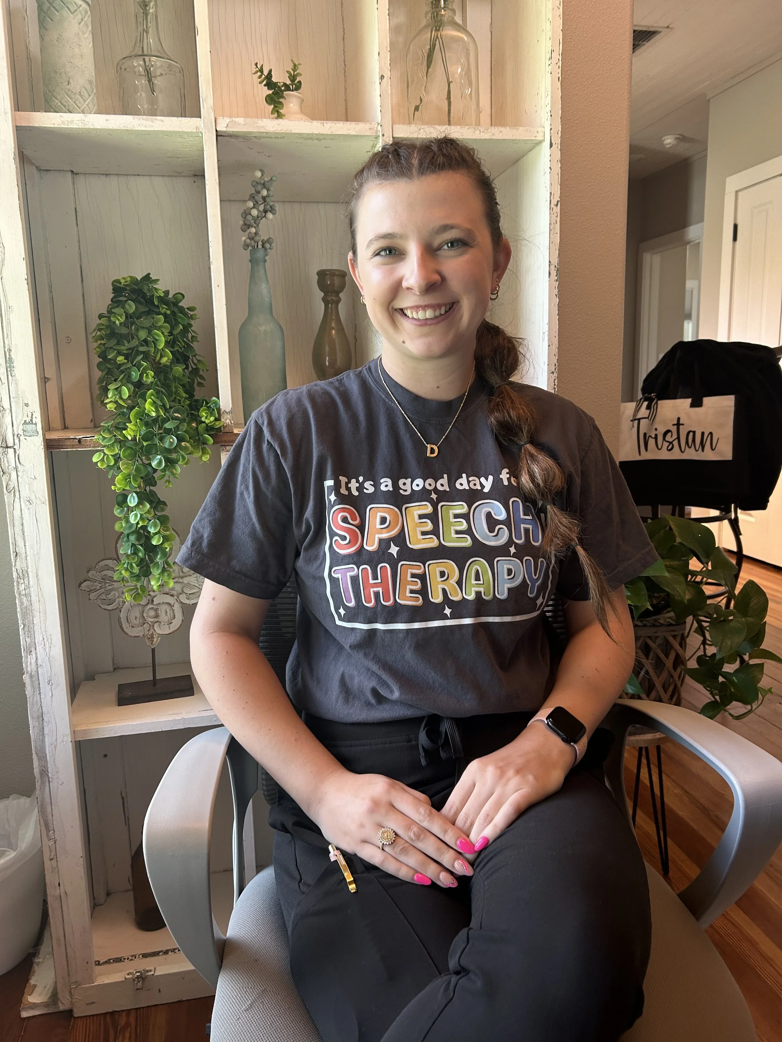 Hi, my name is Tristan Meisetschleager M.S. CF-SLP, and I am a Speech-Language Pathologist here at Texas Elite Therapy Team. I enjoy working with all populations but have a special interest in swallowing disorders/feeding, from infants to geriatrics! I graduated in May, and began full-time here at Texas Elite in June! My favorite part of being an SLP is building strong connections with my patients and supporting them as they meet their goals!